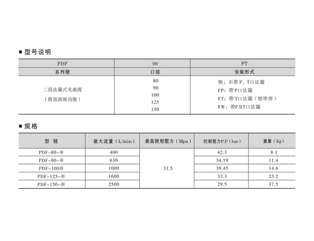 充液阀 PDF-80 90 100 125 150