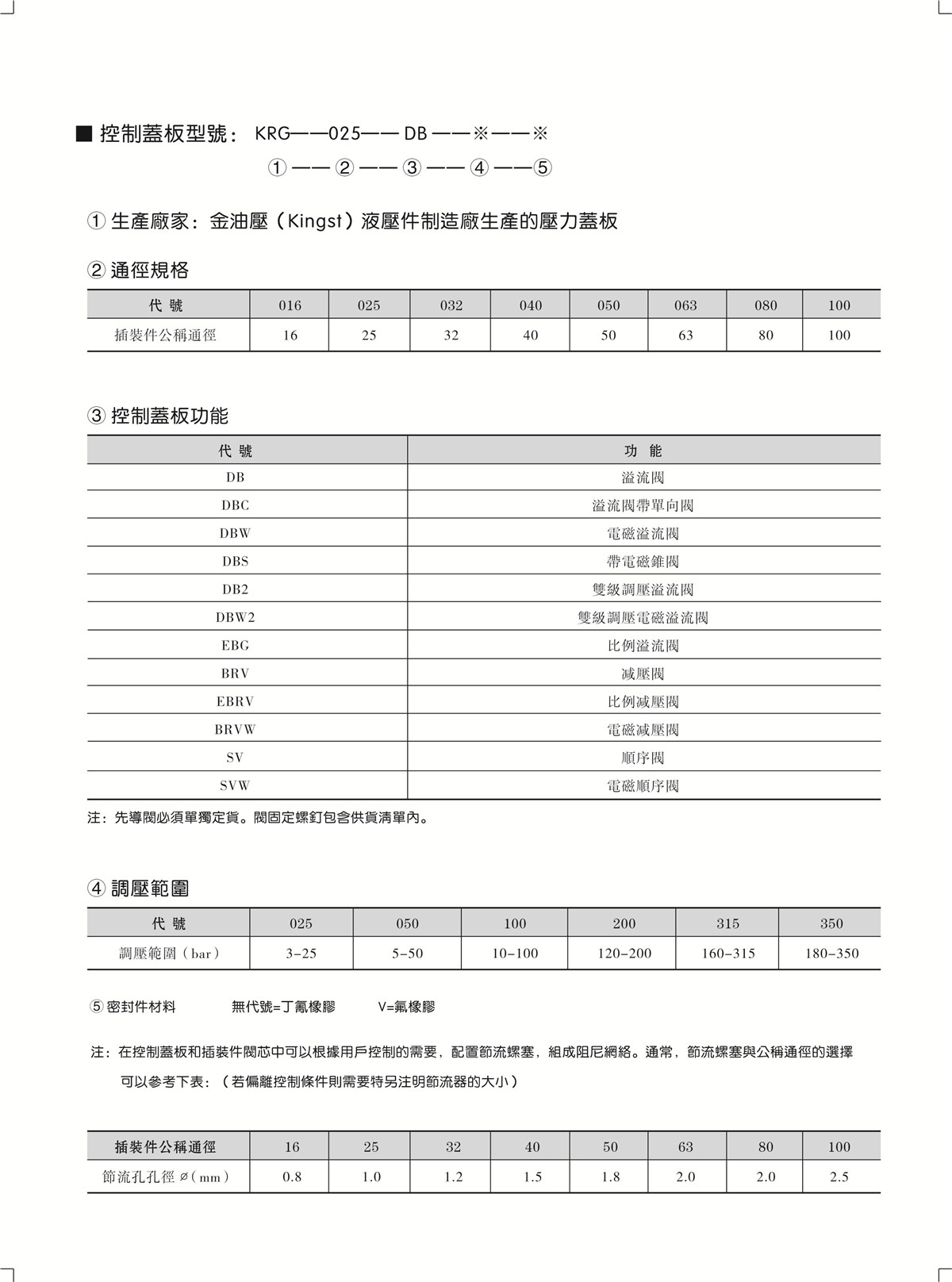 插装压力控制盖板 KCG-025