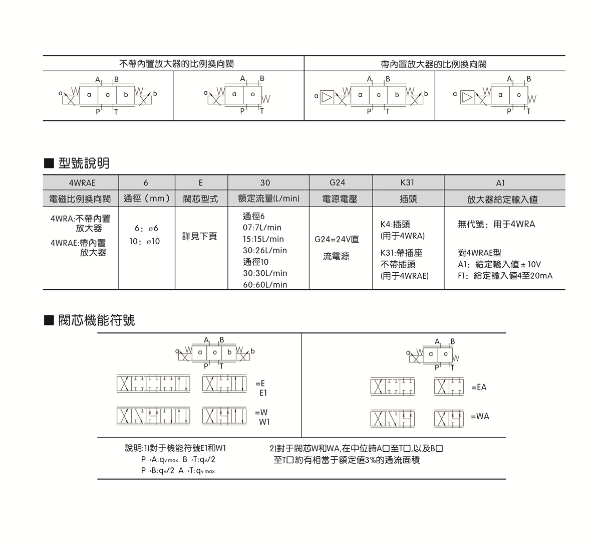 ● 4WRAE:带集成式放大器 ,  可与欧美同类型产品互换。