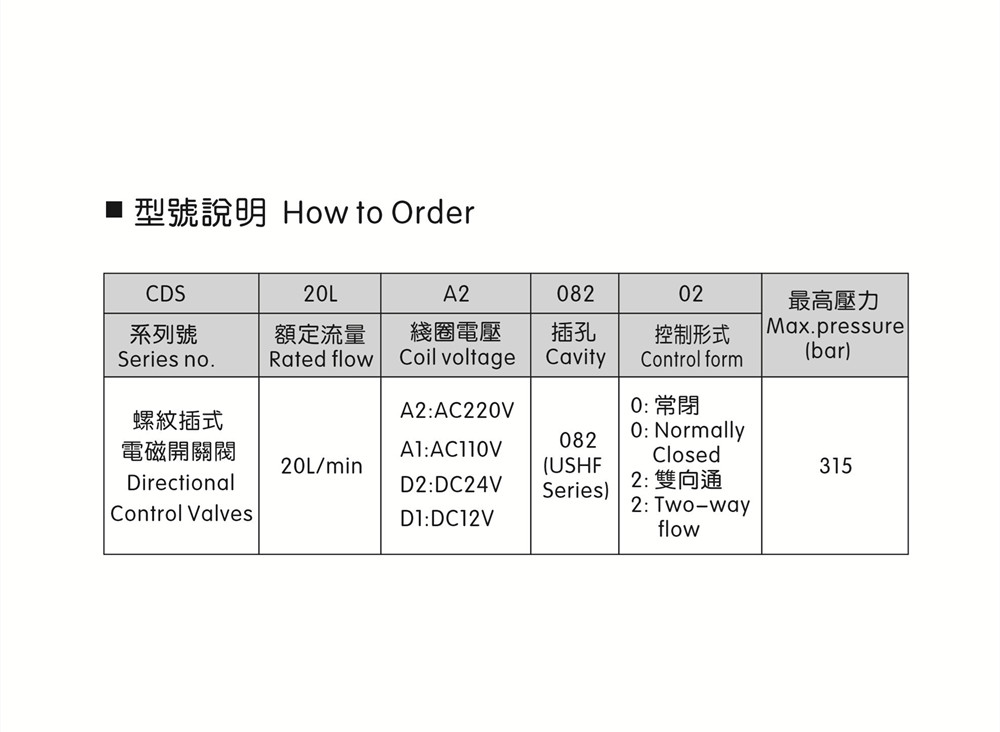 * 最大压力:315bar